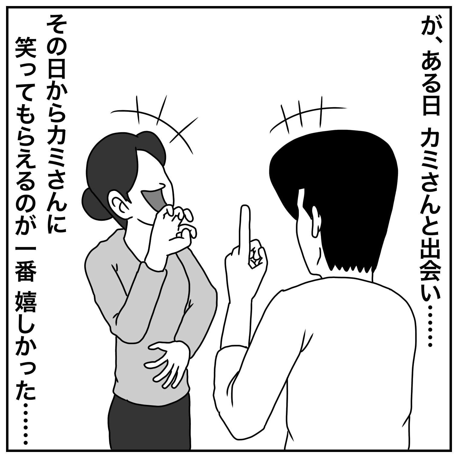 カミさんに笑顔を……2021.06.05漫画 はいどーも、ぢょにーです。今回のおはなしは、カミさんを笑わせることが出来なくなった父のおはなし……あとがきすでにもう友人達は、私がどんな格好をしてようととくにリアクションはありません…… 1 コメントはこちら 同じカテゴリの記事 夏の小ネタ集 その① 年末の恒例作業…… 悟空‼︎ 精米機 どんな『エピソード』が読みたい? いろんなキャラをリーゼントにしてみた 子供が倒れてる⁉︎ メスのクワガタ 父が捕食者の目にに変わる瞬間… 真夜中の救急車……こぼれ話 真夜中の救急車……その④ 真夜中の救急車……その③ 真夜中の救急車……その② 真夜中の救急車……その① スイカの新発見…… 蜂の巣の駆除 その③ 蜂の巣の駆除 その② 蜂の巣の駆除 ムカデに咬まれた…… 雪の日の登園 ホワイトボードと呑んだくれ お知らせ…… 酔っ払い VS 呑んだくれ まりちゃんの誕生日 パソコンの怪 ついにスマホを…… 夏の味 屁‼︎‼︎ かっぱ まりちゃんとマスク 一番星みつけた とある日のランチタイムトーク こっそり飲みに行くには…… ぢょにーのIT革命 final『エロ動画の向こう側』 ぢょにーのIT革命 その③『画像検索』 ぢょにーのIT革命 その②『初期設定』 ぢょにーのIT革命…… くじ運の強さ 昆虫博士? 怖い話をせがまれて…… イラストの特徴…… ぢょにーのマンガを…… リーゼント 思いつき その② 思いつき 『ケーブルテレビ』のバイト お気に入りのシャツ 『ぢょにー』 コンビニのレジ 葬式ハプニング 買い物しようと町まで出かけたら お年玉のケチりかた カミさんに笑顔を…… 飲み屋街が近いと目にするもの…… 監視カメラ これぞ日常…… 一軒家での一人暮らし その③ 一軒家での一人暮らし その② 一軒家での一人暮らし 夢の中でも…… リーゼントの中から出てきた物…… AV女優に会いに行く ぢょにーは『神』 カミさんがいない夜…… 消しゴム…… 山菜料理 その② 山菜料理 お酒以外の趣味 アキラ100% イノシシの解体のおはなし カモの解体 サザエさんを超えた夜 待ち合わせとケータイ その② 待ち合わせとケータイ 鉄板焼きのまりちゃん 100均の湯飲み 数億円入りのバッグ⁉️ 寝言の達人 御老体の土産話 はじめまして、ぢょにー です♡ 前の記事 親子で『ポン』 2021.06.04次の記事 だっこ 2021.06.06アプリなら通知ですぐ読める! NAPBIZブログ This site is protected by reCAPTCHA and the Google Privacy Policy and Terms of Service apply.