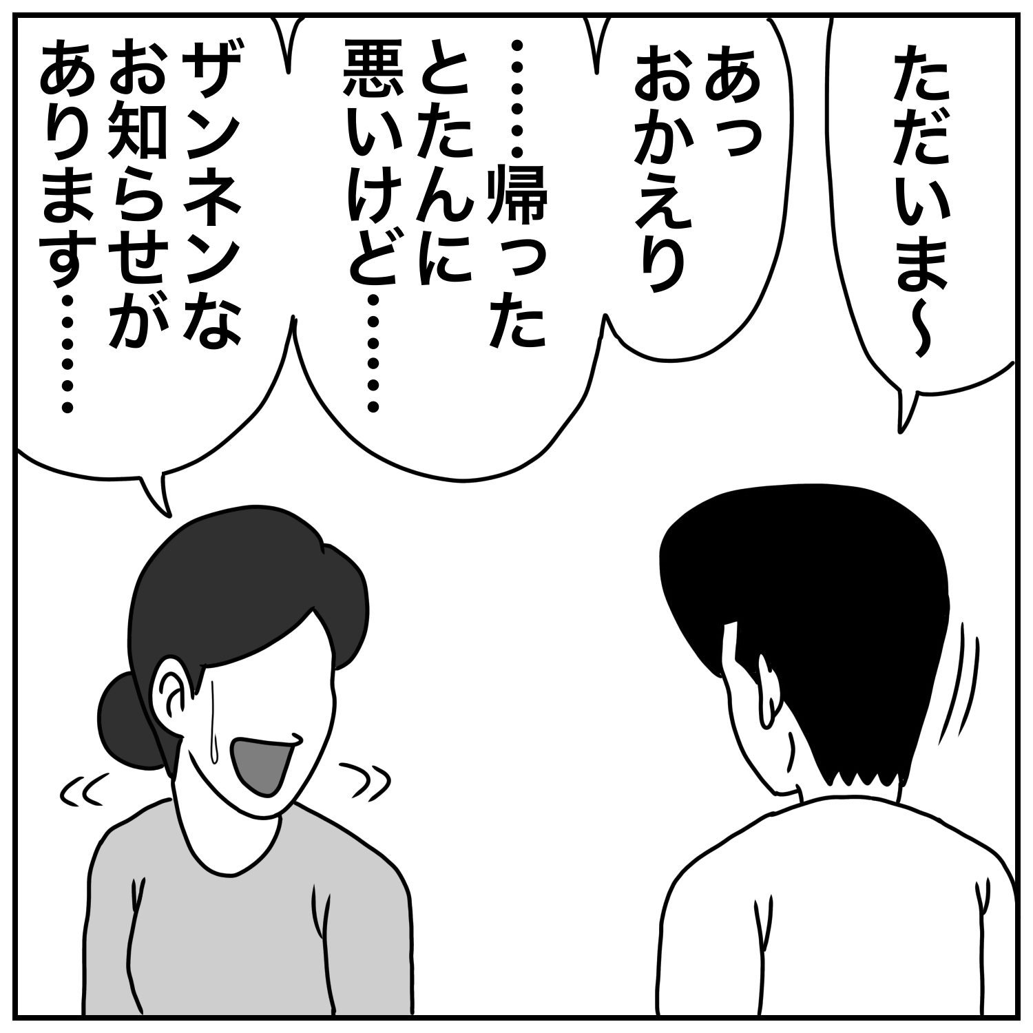 ザンネンなお知らせ……2021.12.23育児絵日記鎖骨, 鎖骨骨折, 骨折 はいどーも、ぢょにーです。11月某日、カミさんから突然告げられたザンネンなお知らせとは…… 広告 あとがきただでさえバッタバタな朝……週明けより、さらにバッタバタな朝が始まる………… 1 コメントはこちら 同じカテゴリの記事 エレベーター evolution2 夢…… 片付け‼︎‼︎‼︎‼︎ 過去の写真…… 大工さん♡ 夏の小ネタ集 その③ 夏の小ネタ集 その① 夏休みの朝 2025 絵の宿題 みんな見て〜♡ ニイニイゼミ にゅーどーぐも 夕飯前のお散歩 クワガタ? せいっ‼︎ ピアノが弾きたい母ちゃん 名前を変えたい…… 母の日♡ 子ネコの名前は? 末っ子の落書き 次女の卒園 エレベーター 梅の花 桜の花 手話…… 節分祭 今年のスケジュール 落とし物 我が家の成長記録日記 末っ子のニガテなもの 父の強さ…… 飛蝗 漢字の宿題 ハロウィン 2024 自分で捕れた虫 姉妹漫才? 父の教え 夏休み 終わりました 夏休みの朝は… 虫捕りと長女 自転車となつ 商店街のくじ引き 思わぬところからクレームが… 衣装ケースに隠した物… 輪ゴムてっぽう 父ちゃんの歌…… 次女のうた…… お姉ちゃんやめたい 戦いごっこの末に 節分の鬼 生まれた理由 寝正月……? クリスマスイブの夜 おんぶ DE 登園 なつは夏が大好き いってきま〜す ハロウィン 次女のお絵描き…… 下校時のお花摘み 『ち◯こ』がオモロいお年頃 おしりの違和感 その② 町内の親睦会で…… 好みの変化 夏の思い出 父のセミ講座 お月さま クワガタ捕り ラジオ体操 2023 『ただいま』『おかえり』 山口県のお土産 プリンセスごっこ・リターンズ 獅子舞となつ 入園式の日には…… 一年生終わりました…… 特にオチのない身の上ばなし 小児科にスズメバチの巣? ラジオ体操と次女 おしりの違和感 次女の算数 ひき算がニガテ あの時期に突入…… 初めてのケーキ 仕事の休憩中なんですが…… 初めての轟音に…… 園芸コーナーのお買い物 娘たちの怖いもの 子供に気を取られて…… きょうだい喧嘩 長女のランドセル 最後の登園 朝の不思議 長女の誕生日プレゼント 次女の推しアニメ 我が家でクラスター発生⁉︎ その② 我が家でクラスター発生⁉︎ 2021年 終了 練習不足の発表会♨︎ 次女 鎖骨骨折……③ 次女 鎖骨骨折② 『病児保育』の申請 次女 鎖骨骨折……① ザンネンなお知らせ…… 寝かしつけ その② 寝かしつけ 娘の運動会 近所の飲み屋さん ごはんハプニング【大惨事編】 ごはんハプニング【序の口編】 お姫さまならぬ『おしめさま』 あの有名ロボット…… カブトムシのお世話 我が家の夏の風物詩 家の中 探検家 プリンセスごっこ 次女の誕生日プレゼント その② 次女のお誕生日プレゼント その① 姉妹げんか 姉の仕返し なんの音? 我が家の次女ちゃん⑤ ぬいぐるみがほしい 長い髪を目指して…… 我が家の次女ちゃん④ 消えた洗濯物 我が家の次女ちゃん② ③ 花の咲く頃…… 鬼滅ブーム その③ 損な役回り その② 父のお留守番…… はじめてのお誕生日プレゼント 我が家の次女ちゃん はじめてのヘアゴム 長女のあこがれ クリスマスの朝…… 深夜の事件…… 鬼滅ブーム おまけ話 おむつ交換 リターンズ 鬼滅ブーム その② 鬼滅ブーム おむつ交換 ① ② カミさんが家からいなくなった……エピローグ【3人目誕生編②】 カミさんが家からいなくなった……エピローグ【3人目誕生編①】 カミさんが家からいなくなった……11 【がんばった小さな姉妹】 カミさんが家からいなくなった……⑩ 休日の子守り カミさんが家からいなくなった……⑨ 【最強?の助っ人】 カミさんが家からいなくなった……⑧ 【かーちゃんに会いたい】 カミさんが家からいなくなった…… ⑦ 【久々のかーちゃん】 カミさんが家からいなくなった……⑥ 【みんなに感謝】 カミさんが家からいなくなった……⑤ 【温かいごはん】 カミさんが家からいなくなった……④ 【切迫早産】 カミさんが家からいなくなった……③ 【深夜の容態異常】 カミさんが家からいなくなった……② 【安産のジンクス】 カミさんが家からいなくなった…… いやいや期突入 次女の夜泣き 次女の性格が見え始めた まだ小さいお姉ちゃん…… 四つ葉のクローバー その⑤ 四つ葉のクローバー その④ 四つ葉のクローバー その③ 四つ葉のクローバー その② 四つ葉のクローバー 一番星みつけた おもちゃのテントの中に…… 朝のトイレで 次女との買い物で…… マスク作り こたつたこ コルク栓 忘れ物 その② 忘れもの…… 寒い日の朝に オムツ交換 くじ運の強さ その② 言葉がわかってきた☀︎ ゾウさんのすべり台 final 見せて〜 ご機嫌ナナメの原因は…… ゾウさんのすべり台 その⑤ 娘と手遊び オレが二人いたら…… 飲み屋街が近いと…… ゾウさんのすべり台 その④ ゾウさんのすべり台 その③ 忘れ物 こっそり飲みに……その③ 妹の成長が…… 地ビール祭りの日に せっせっせ♩ 損な役回り…… 夕方の散歩 手遊び こっそり飲みに……その② 新しいネタで