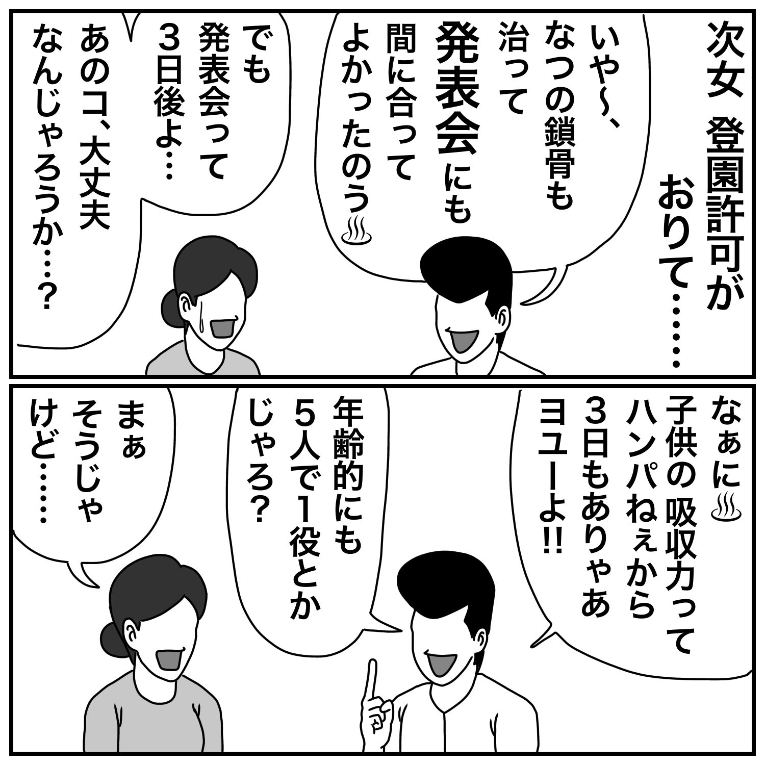保育園の『発表会』があと一か月と迫った頃、突如『鎖骨』を骨折してしまった次女……